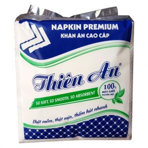 – Khăn giấy vuông napkin lớn 33*33cm Thiên An Xanh được sử dụng rất nhiều trong các nhà hàng, khách sạn, quán ăn,…dùng để lau chùi, lót chén dĩa, hoặc được gấp chéo lại theo hình tam giác bỏ vào rổ tre cho thức khách khi ăn uống.